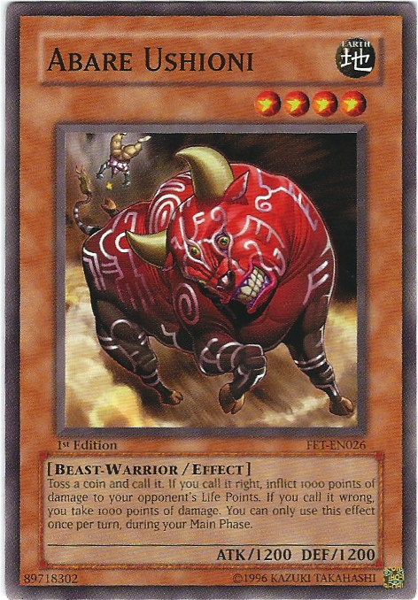 Toss a coin and call it. If you call it right, inflict 1000 points of damage to your opponent''s Life Points. If you call it wrong, you take 1000 points of damage. You can only use this effect once per turn, during your Main Phase.