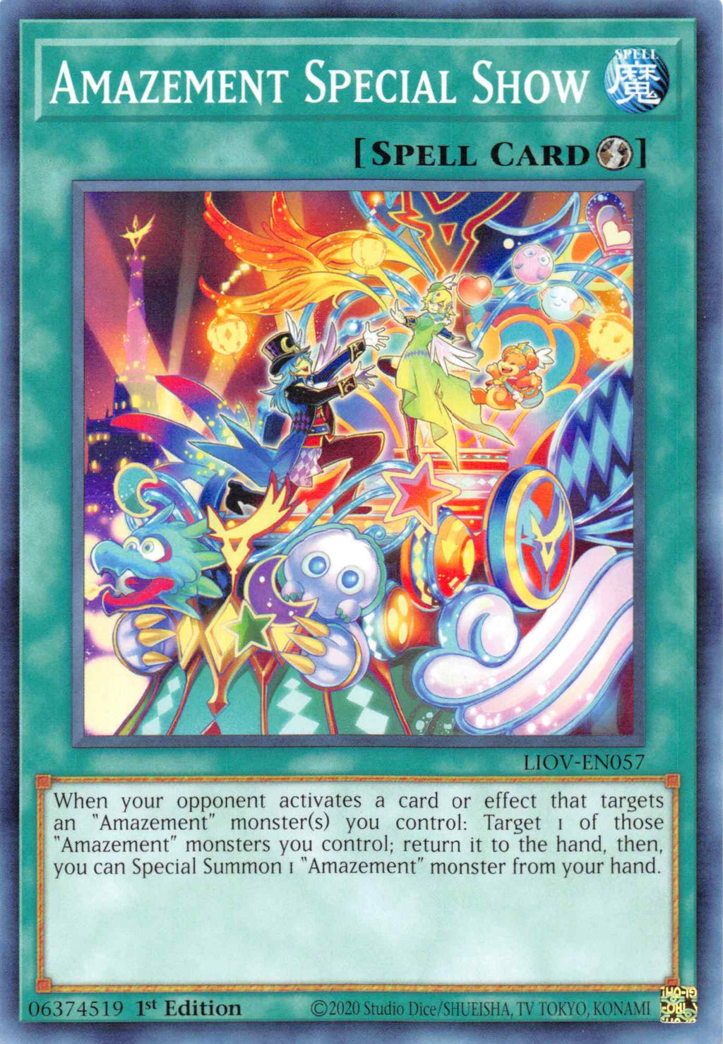 When your opponent activates a card or effect that targets an "Amazement" monster(s) you control: Target 1 of those "Amazement" monsters you control; return it to the hand, then, you can Special Summon 1 "Amazement" monster from your hand.