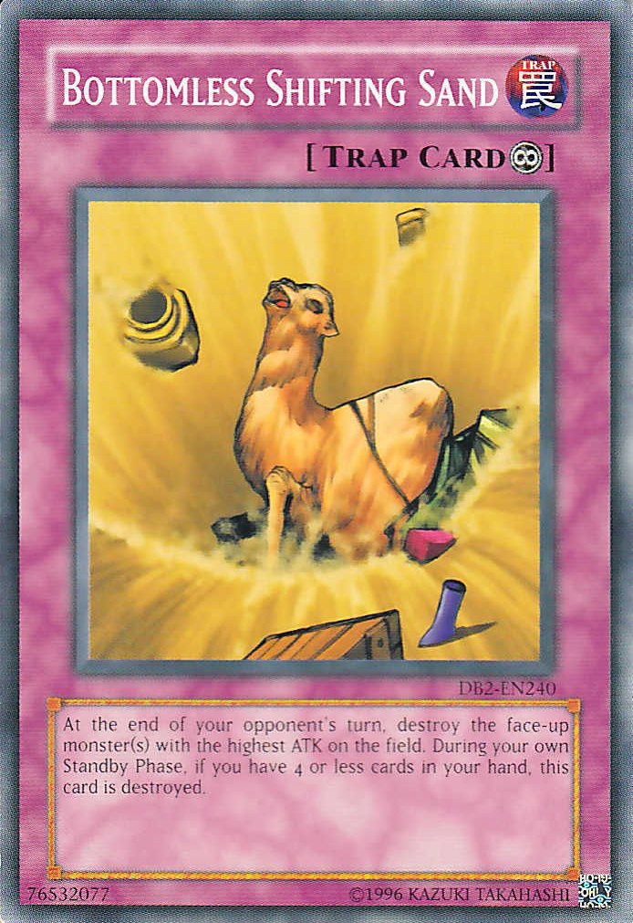 At the end of your opponent's turn, destroy the face-up monster(s) with the highest ATK on the field. During your own Standby Phase, if you have 4 or less cards in your hand, this card is destroyed.