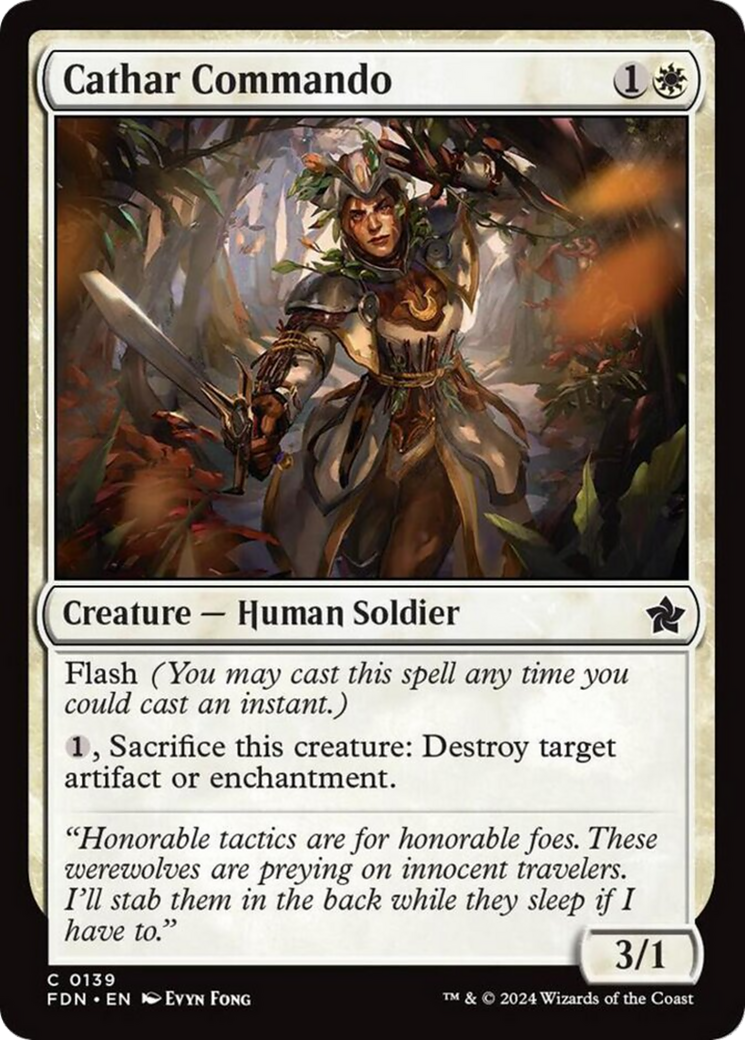 {1}, Sacrifice Cathar Commando: Destroy target artifact or enchantment.